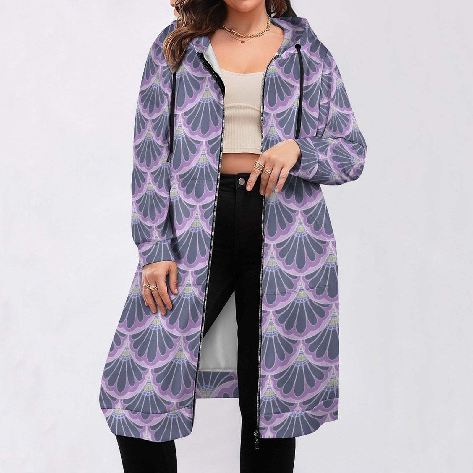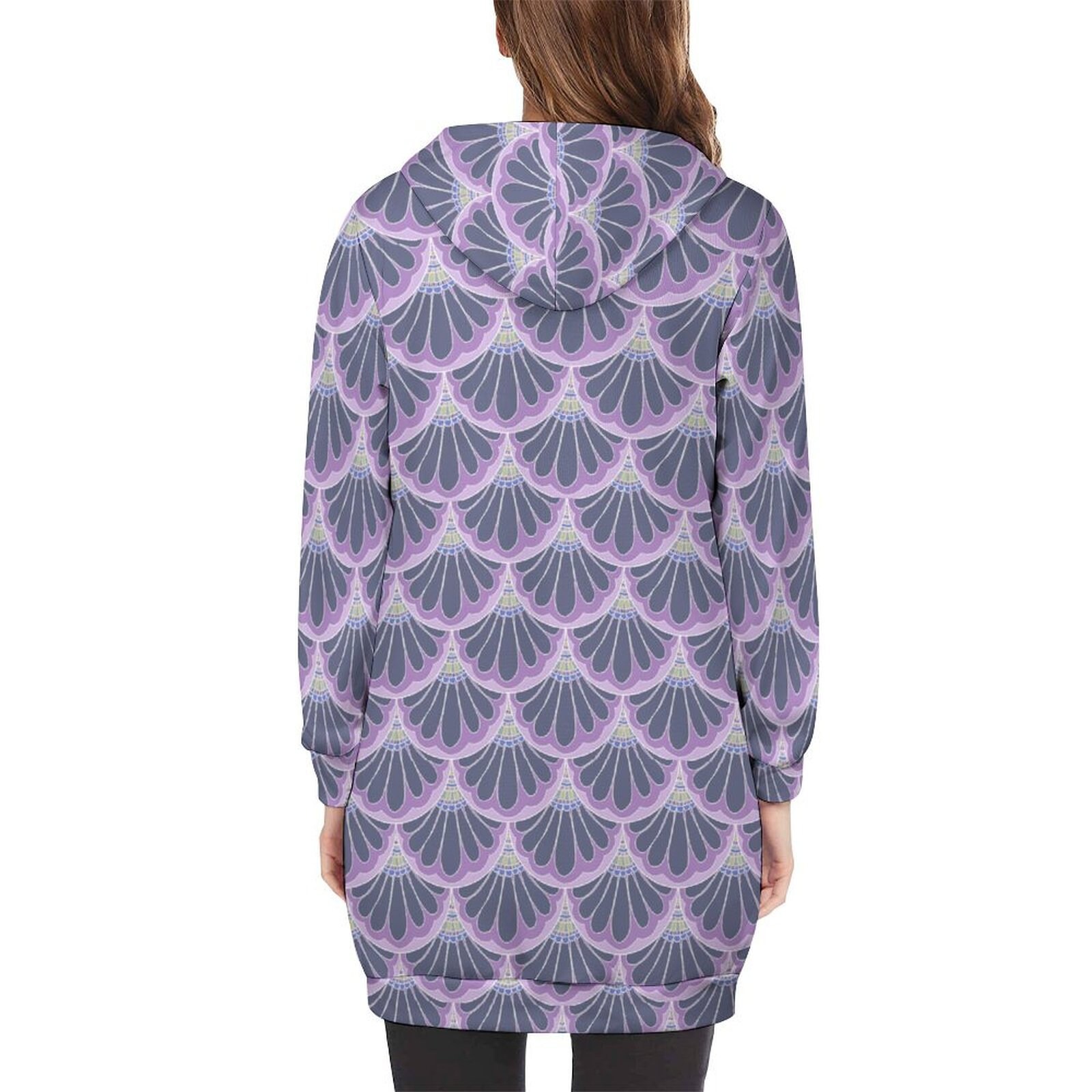 Hoodie Dress, Petal Maille, Pink & Gray, Hand Drawn Mermaid Paisley,