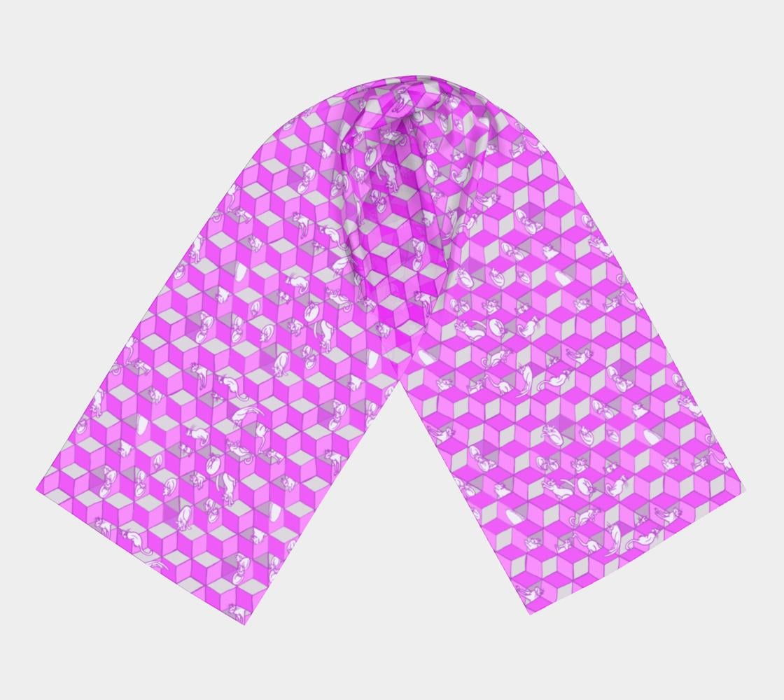 Cats In Boxes! Geometric Optical Illusion Cat Print Scarf in Magenta.