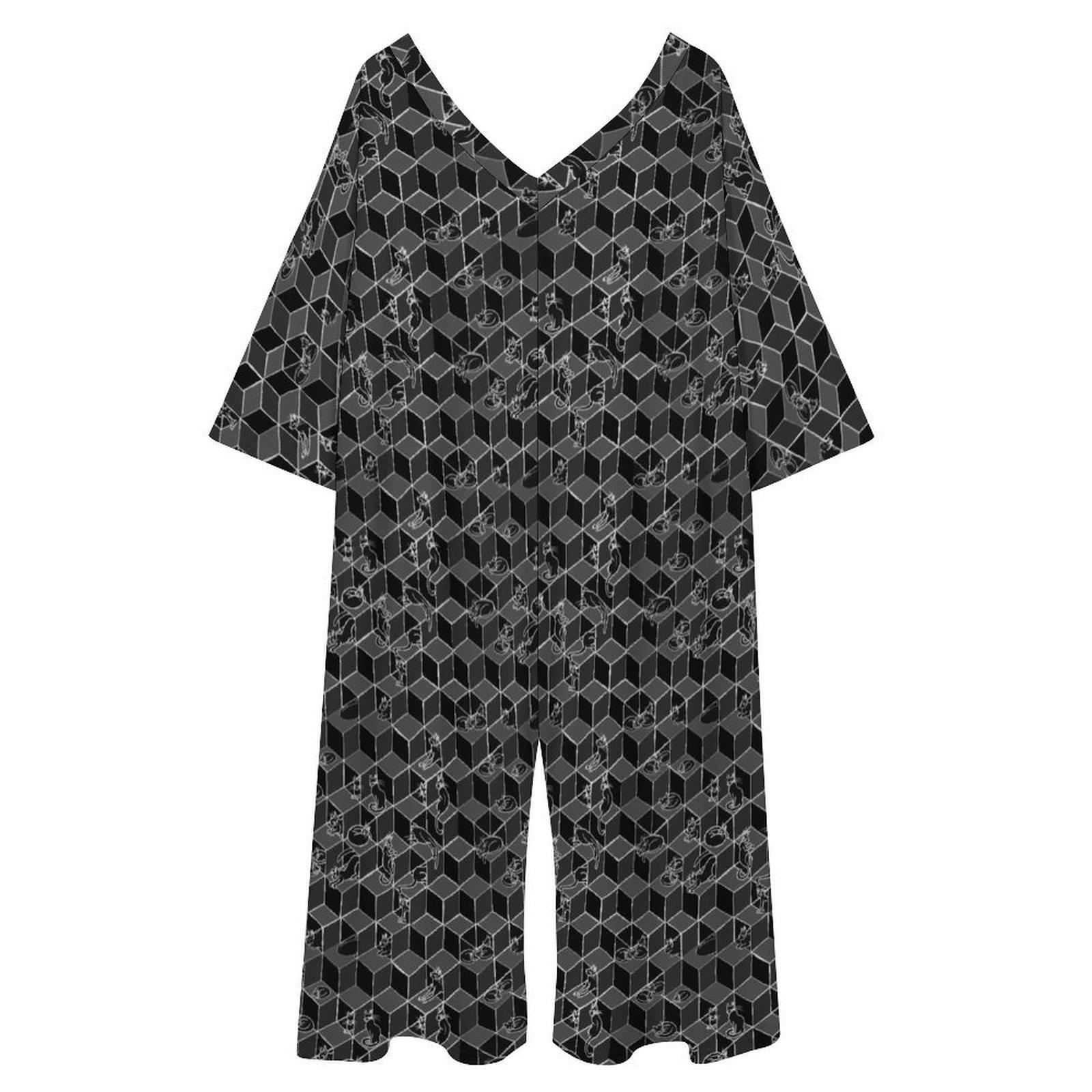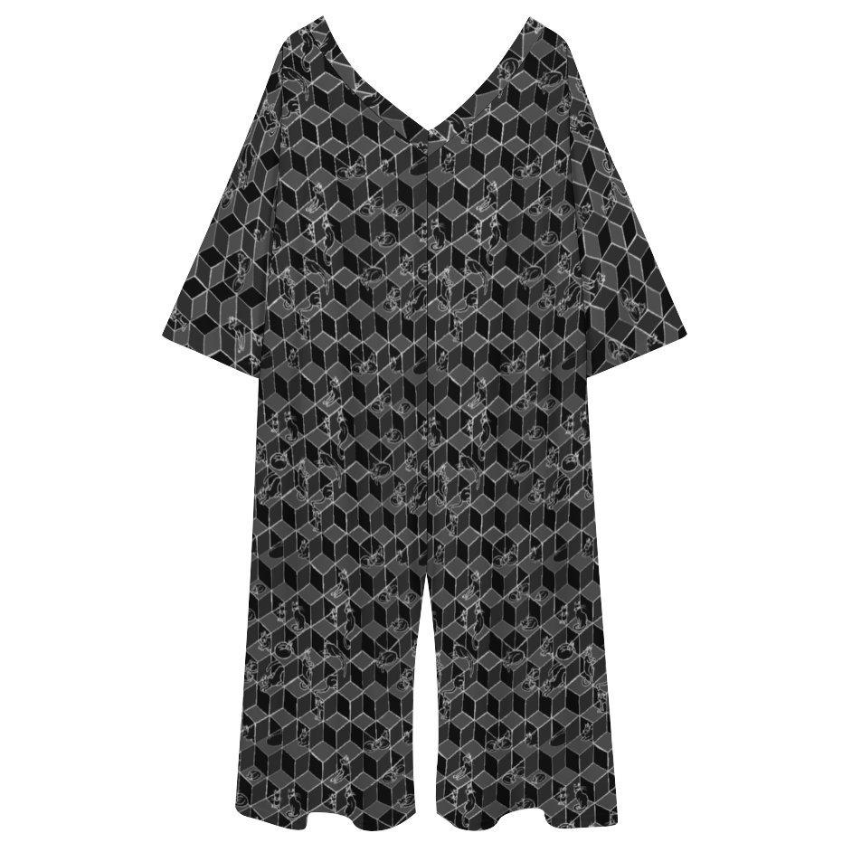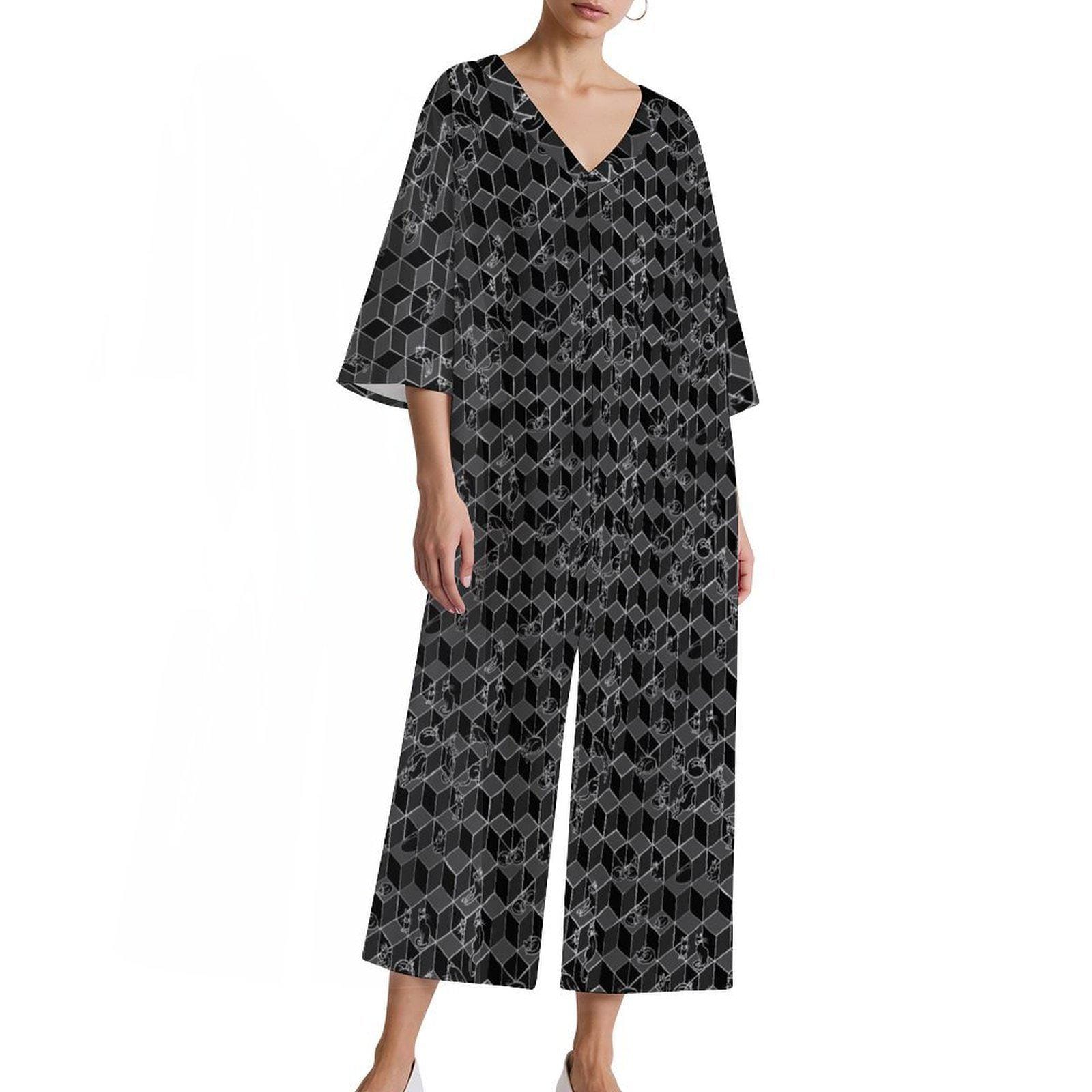 Cats in Boxes, Geometric Optical Illusion, Baggy Relaxed-Fit Jumpsuit, in Black, One Size Fits All. Great Chillout, Poolside, or Festival Wear!
