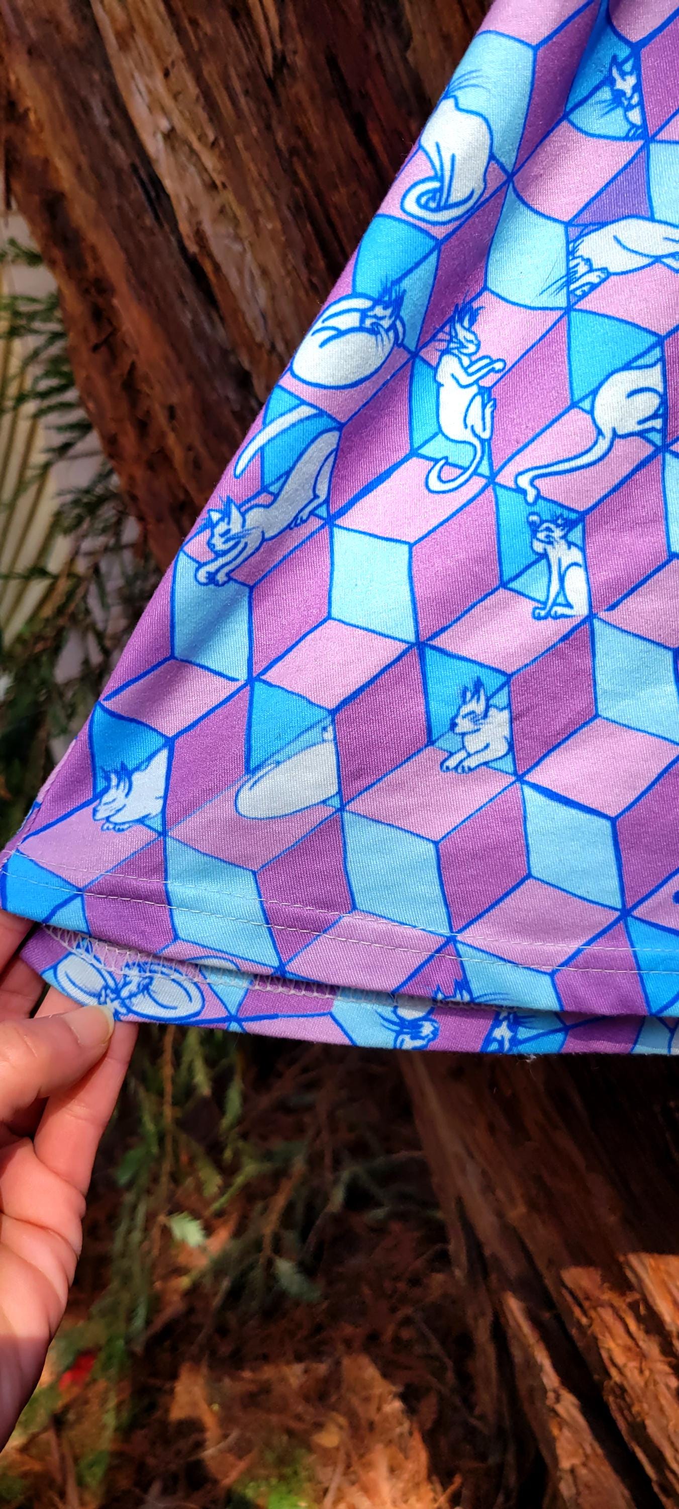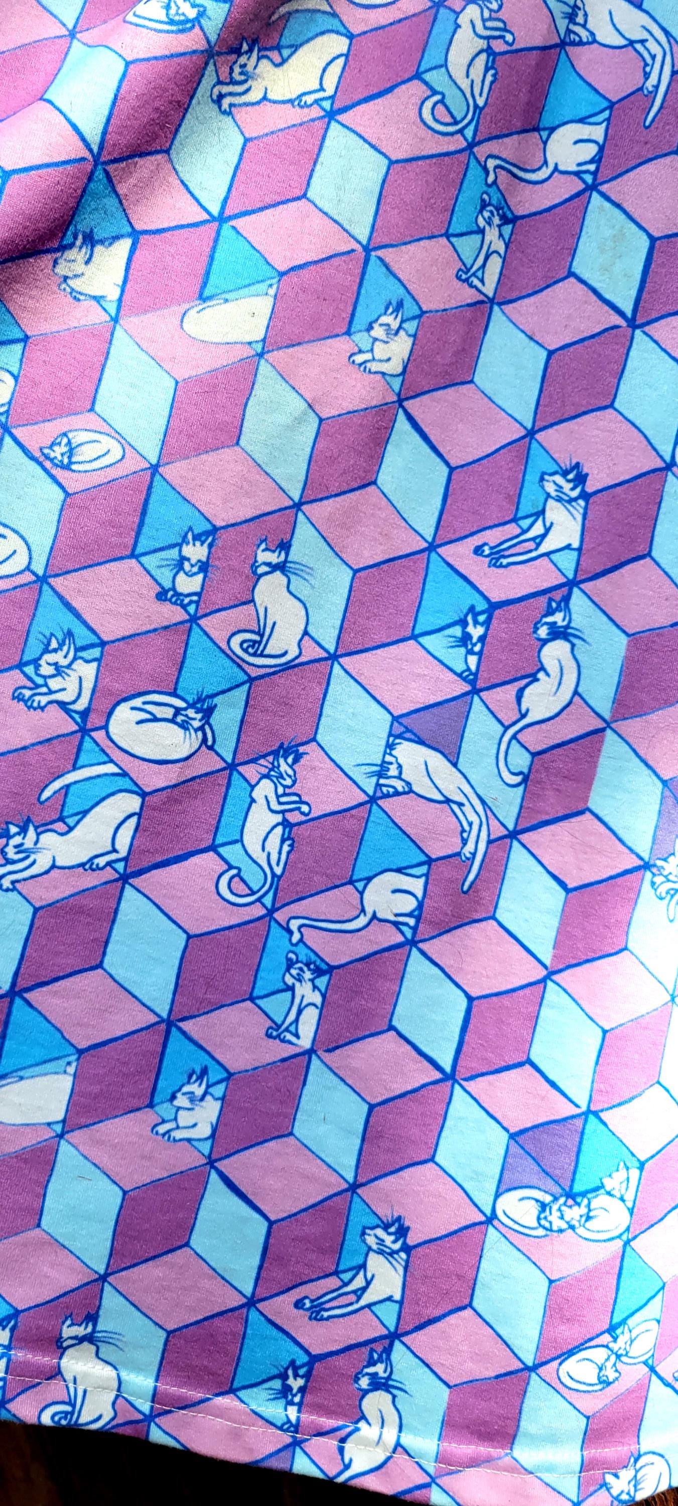 Cats in Boxes, Geometric Optical Illusion, Pink & Blue Vapor Caftan, One Size Fits All. Great Chillout, Poolside, or Festival Wear!