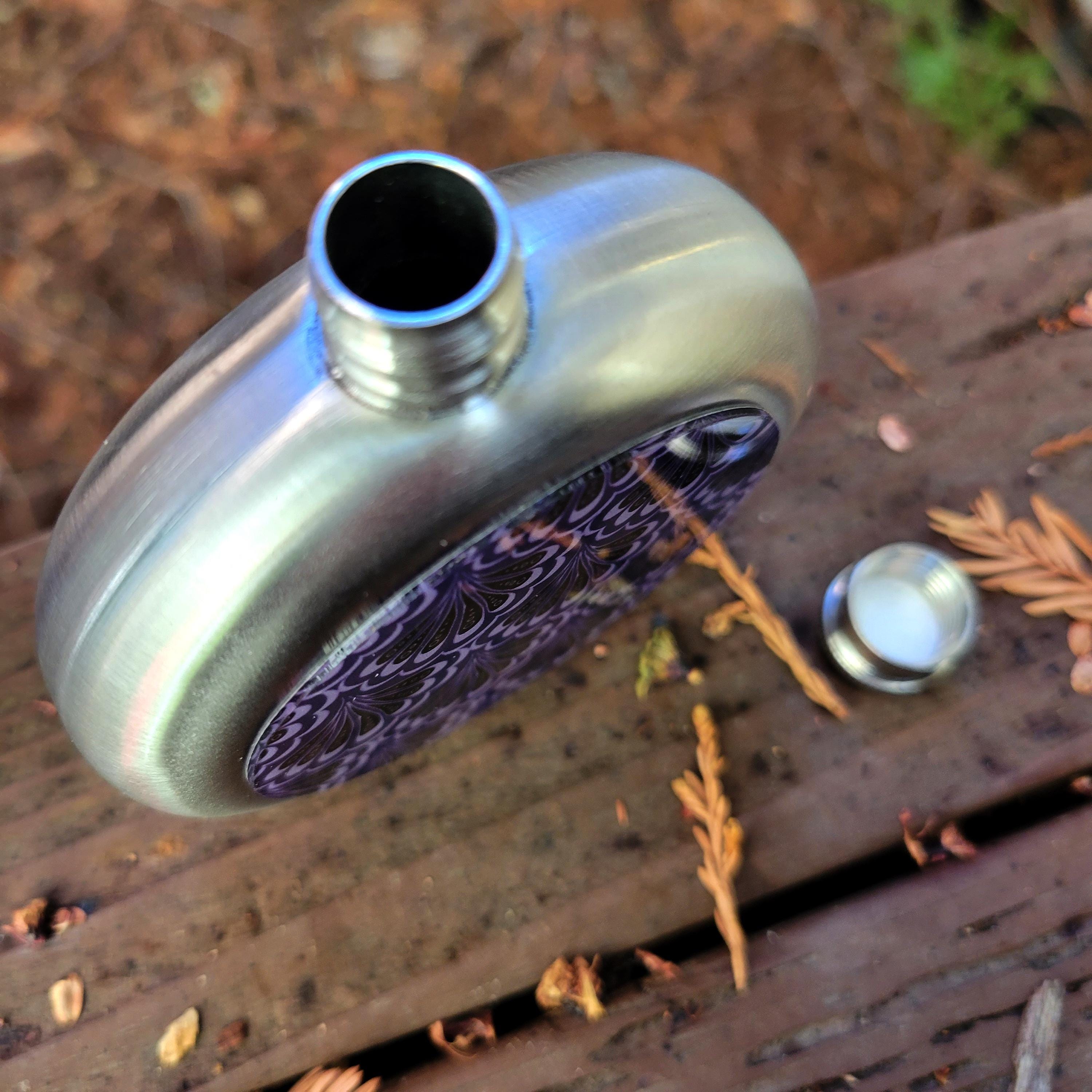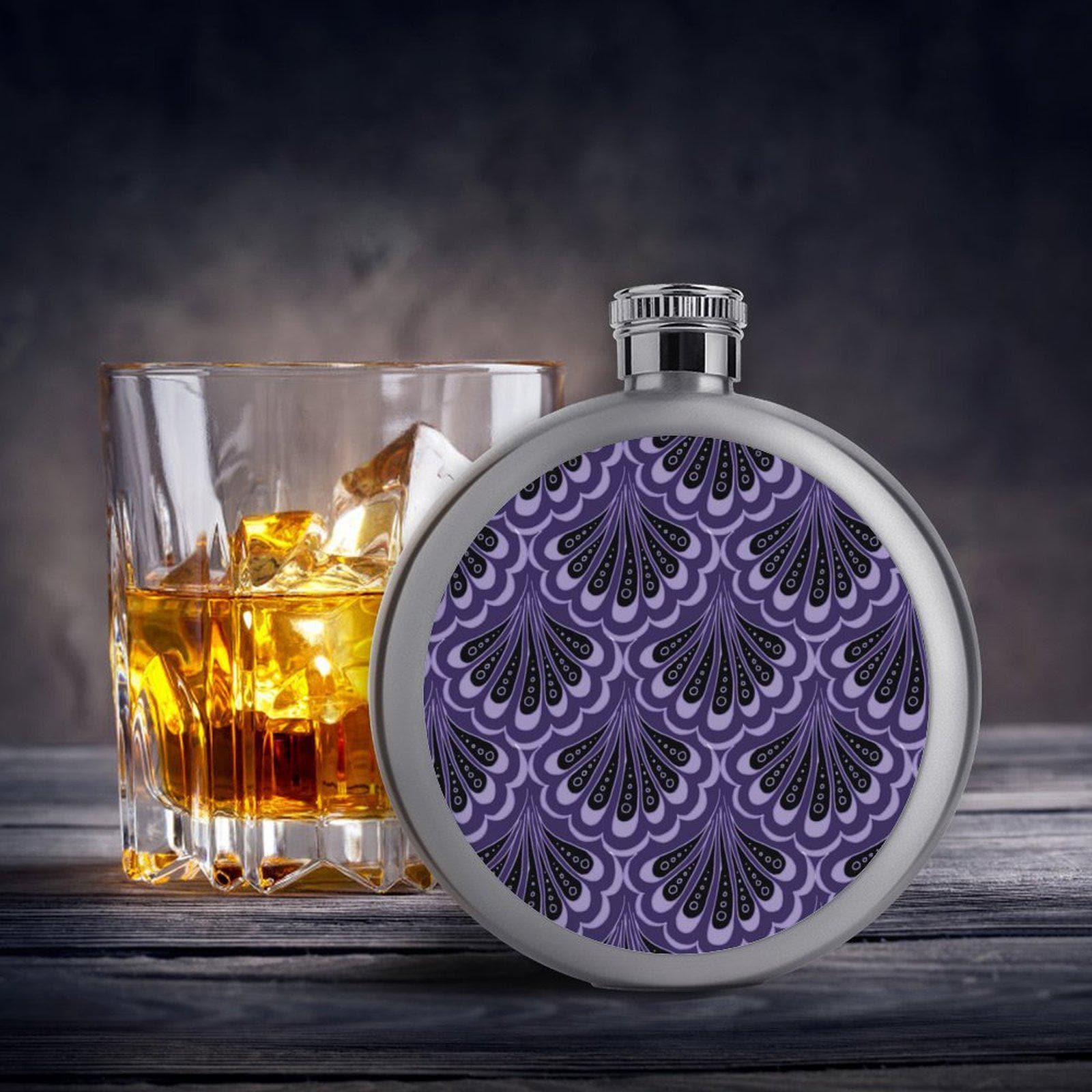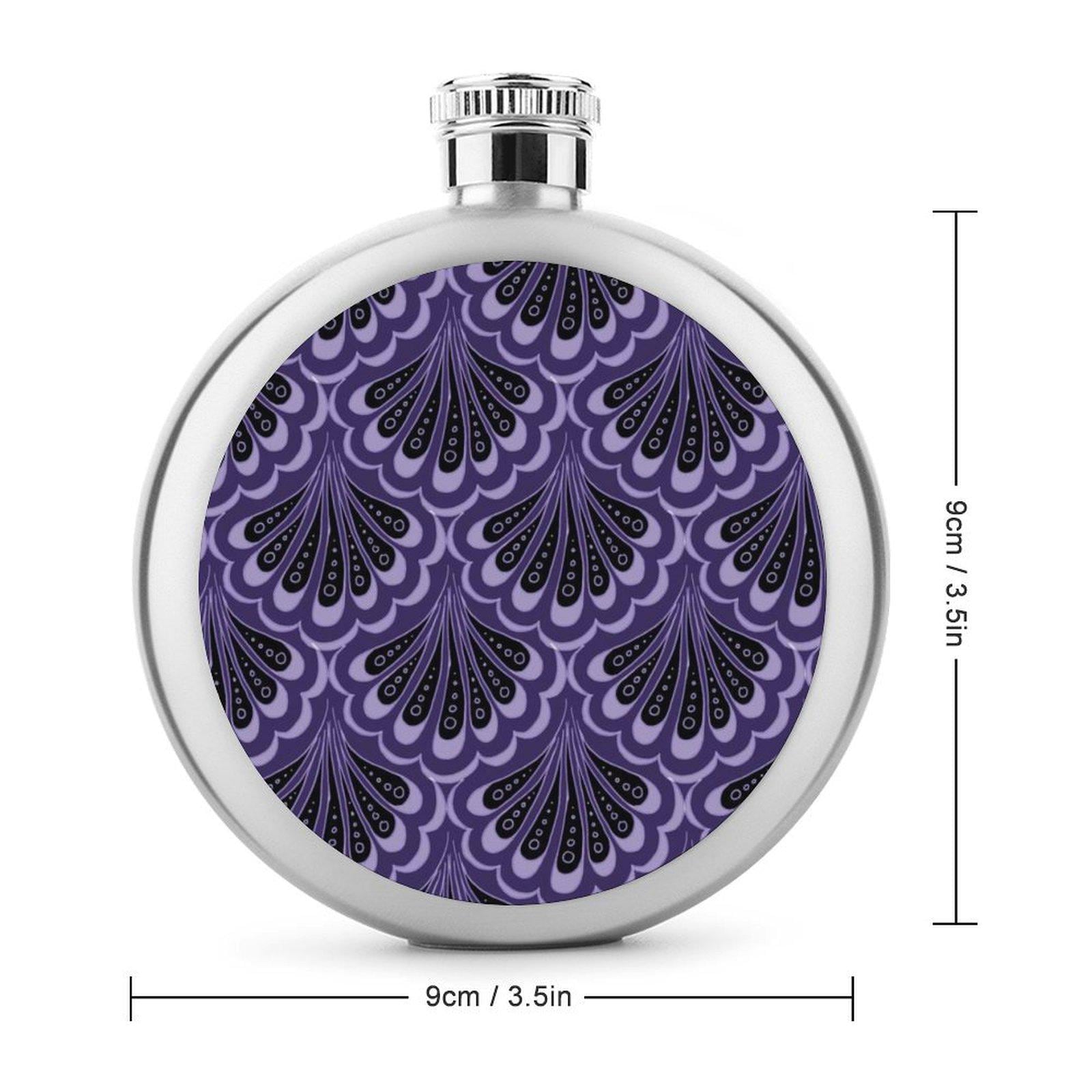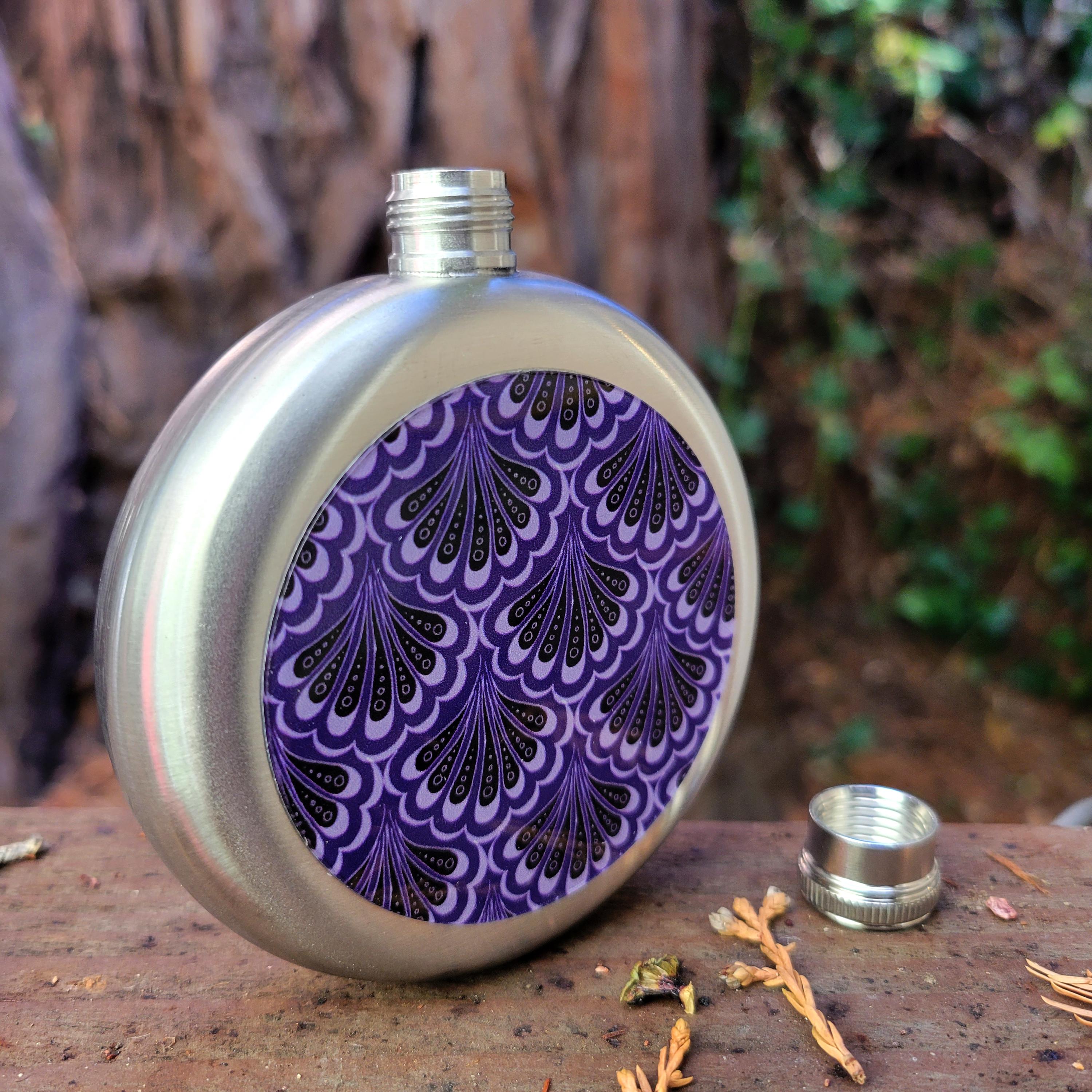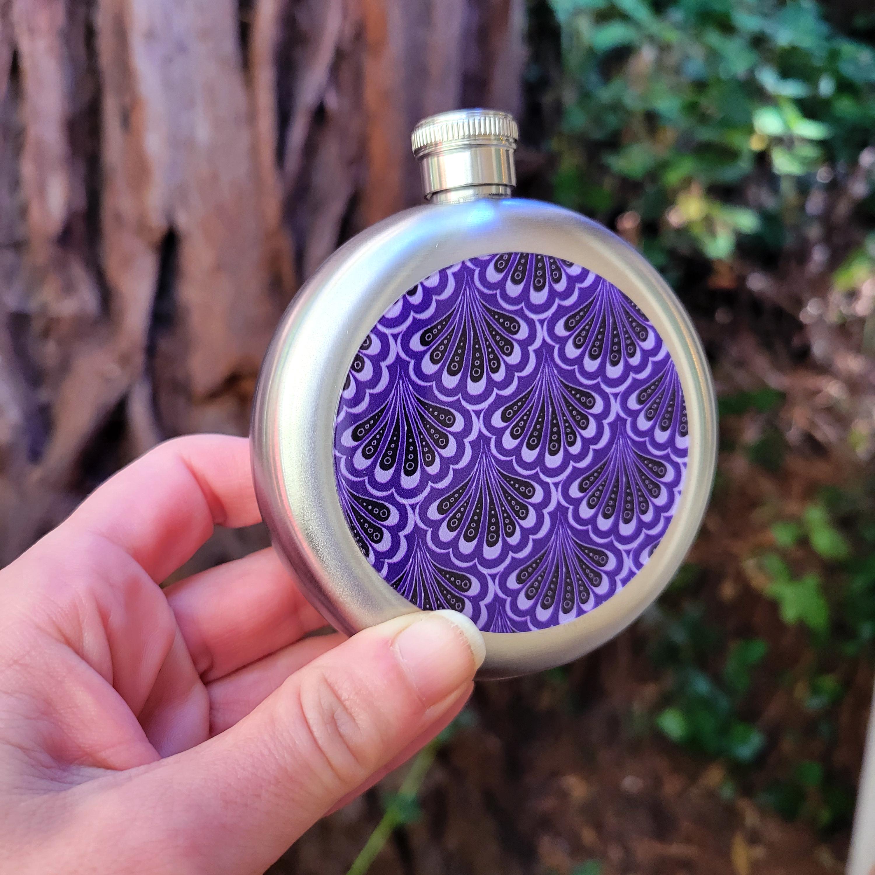 Stainless Steel Flask, Scallop Maille Mermaid Paisley, Purple & Black.