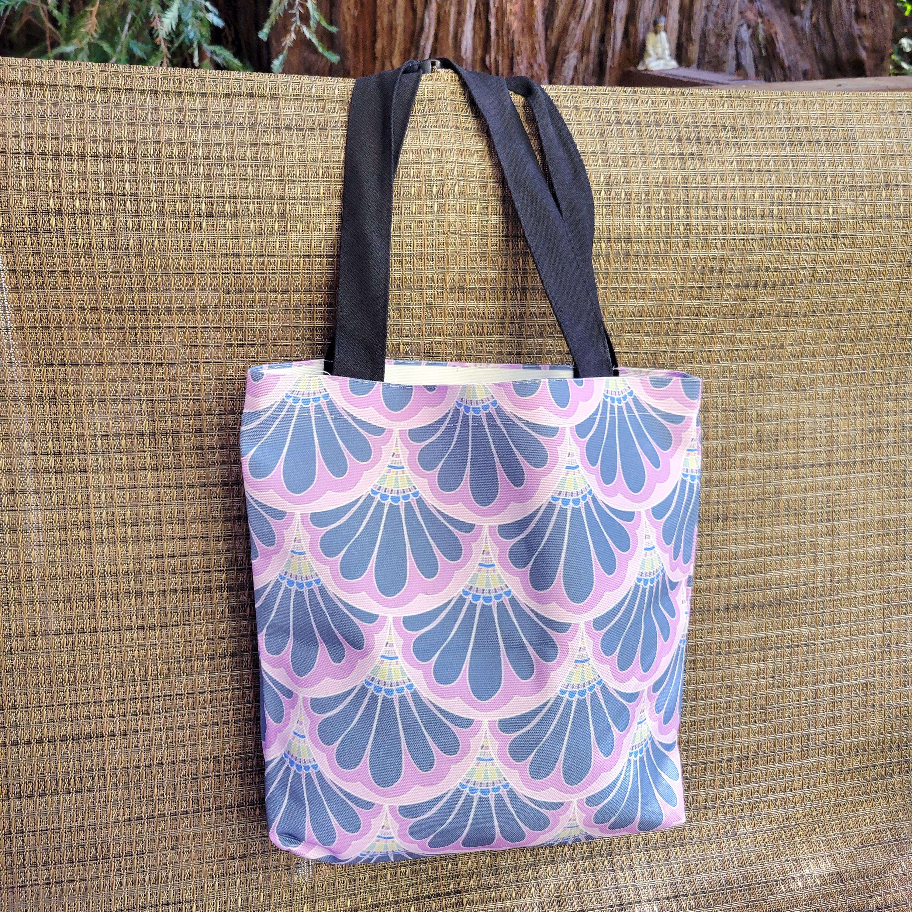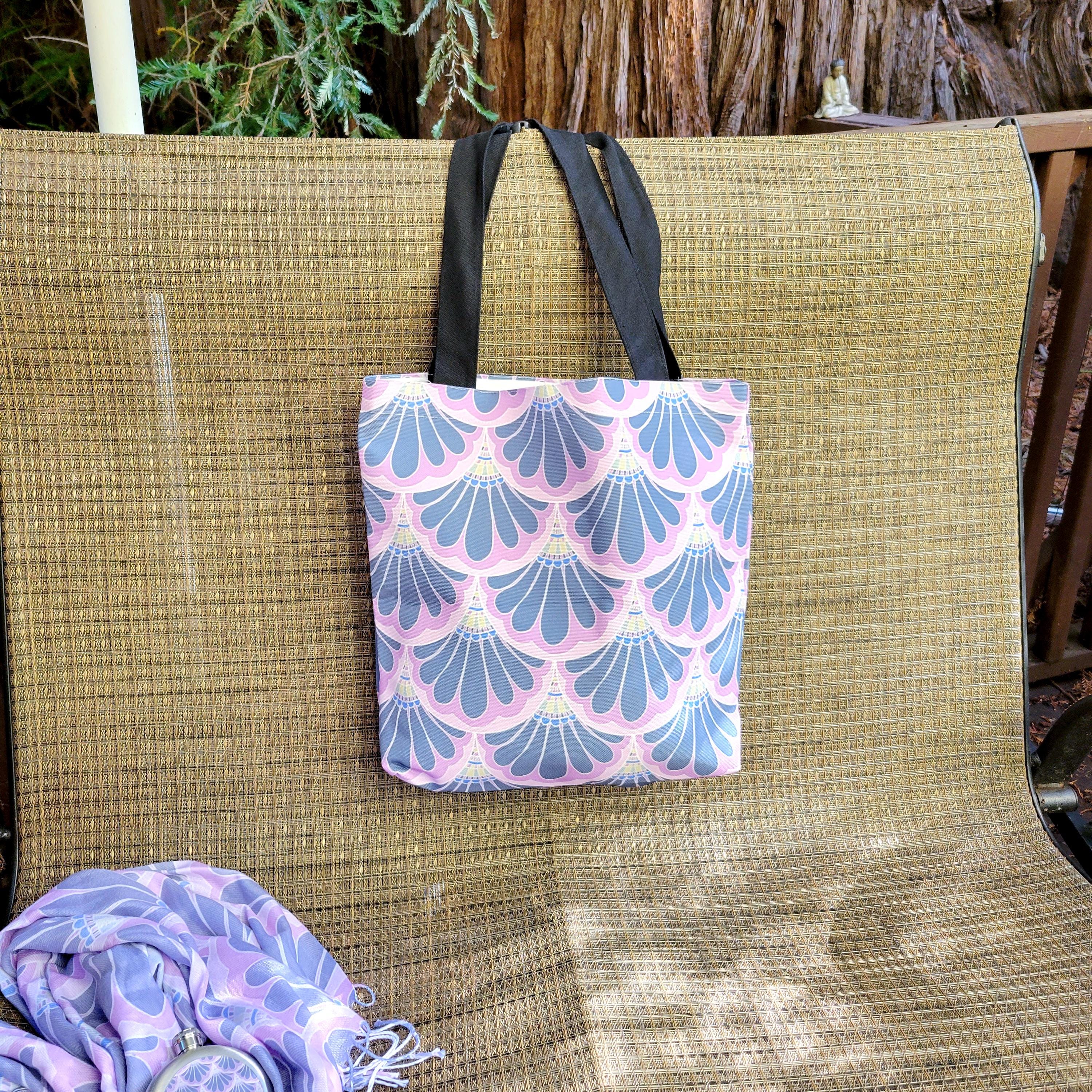 Pink Mermaid Scale Tote, Paisley Canvas Book Bag.
