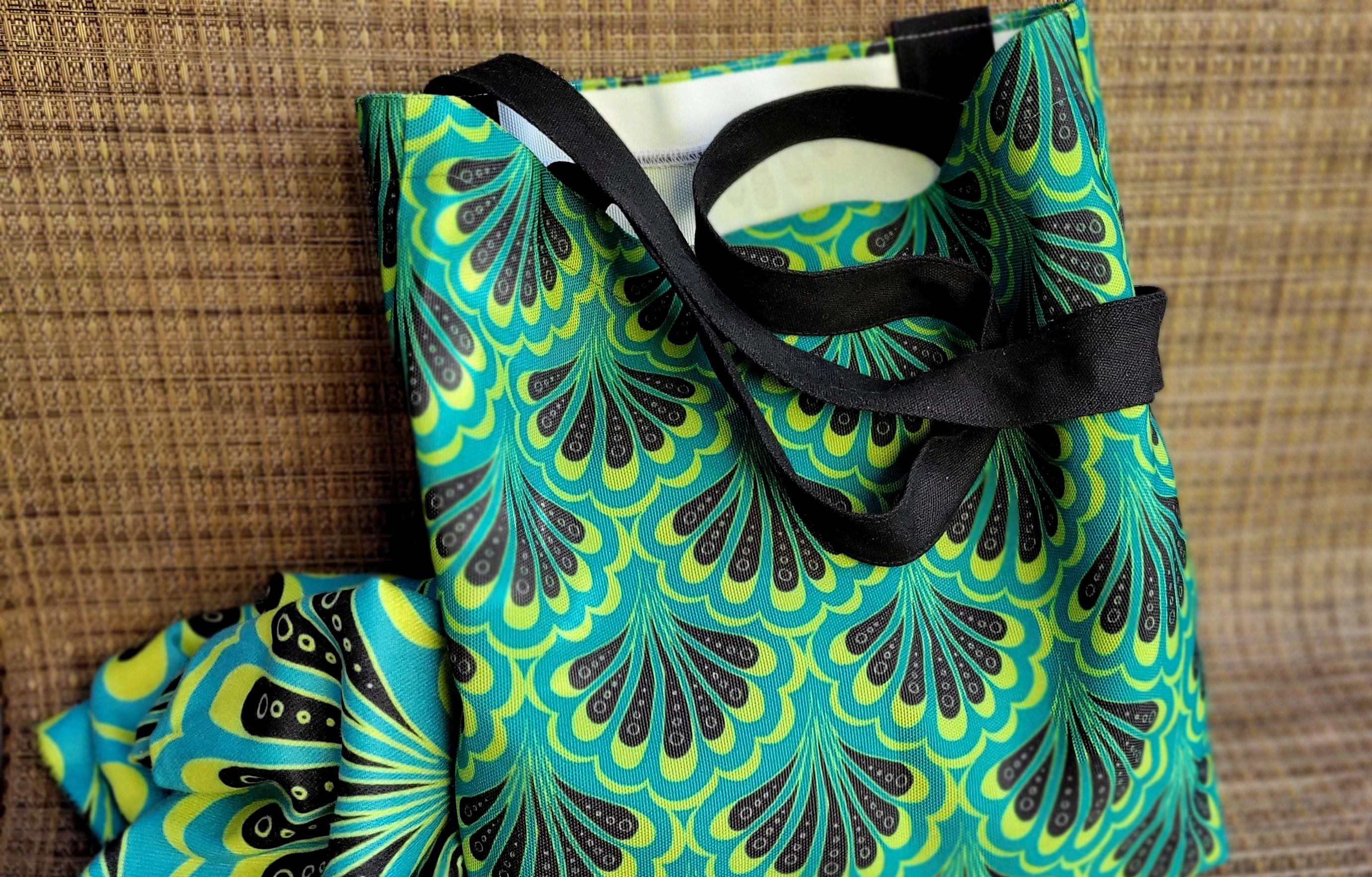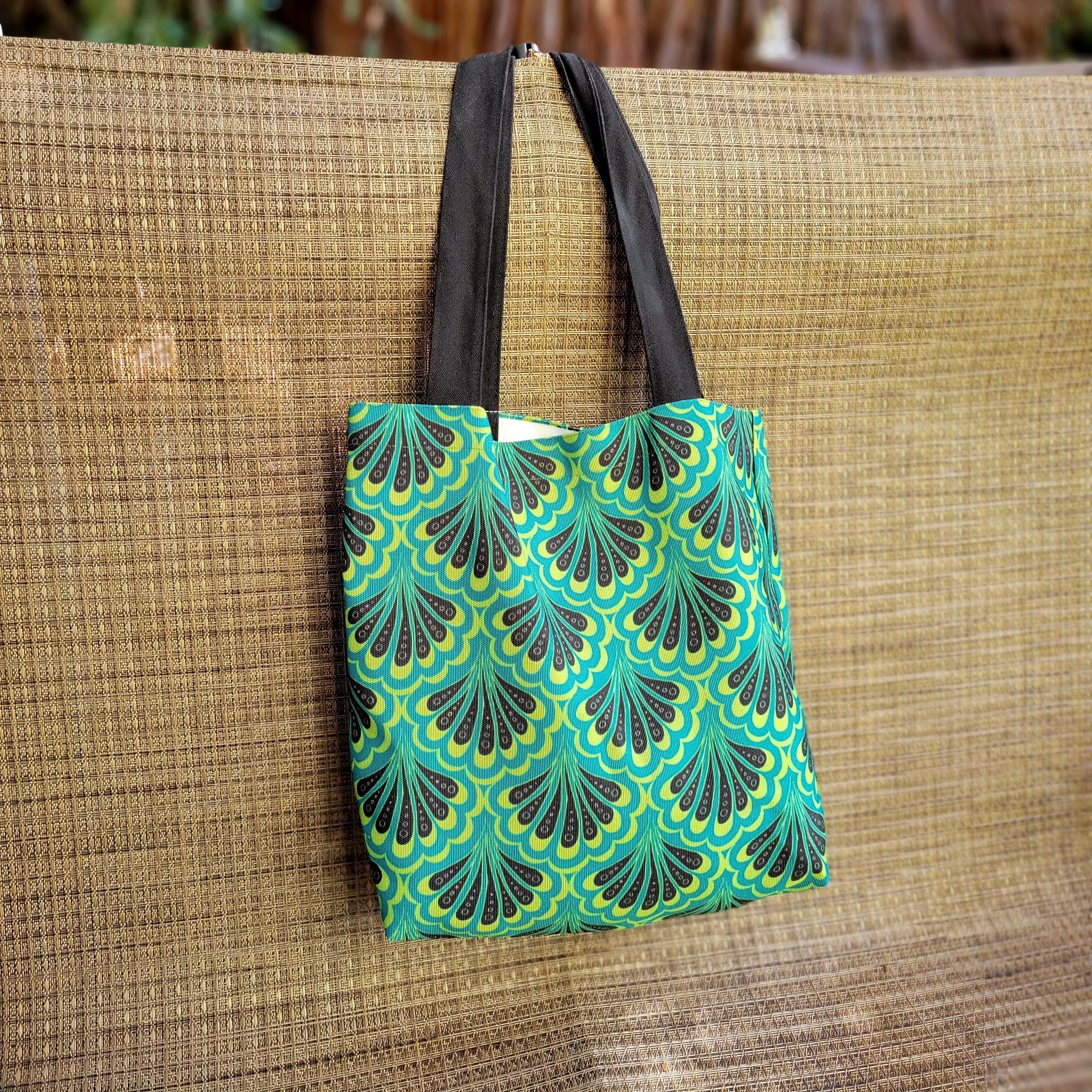 Green Mermaid Scale Tote, Paisley Canvas Book Bag.