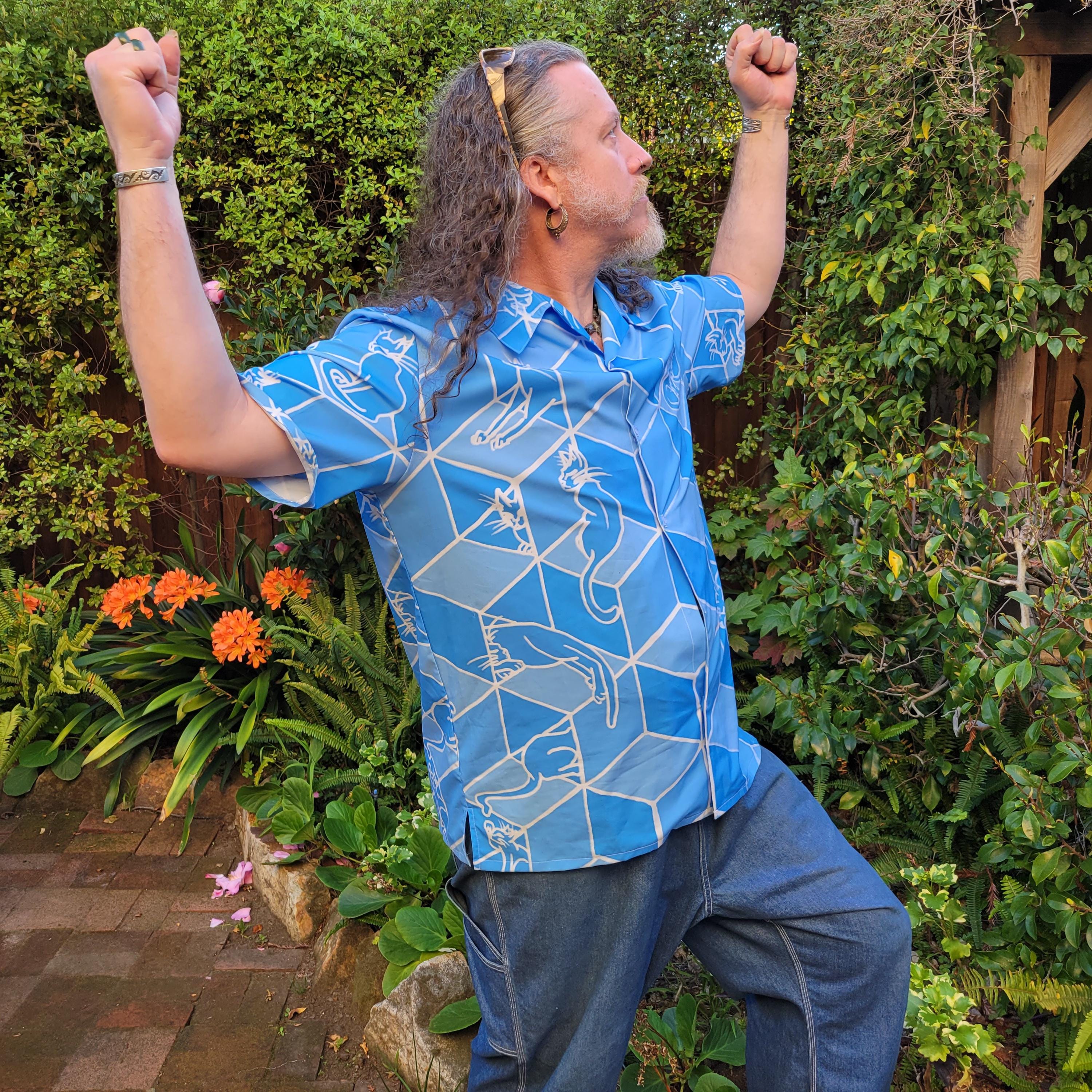 Geometric Optical Illusion, Button-up Print Hawaiian Shirt, Made in USA.