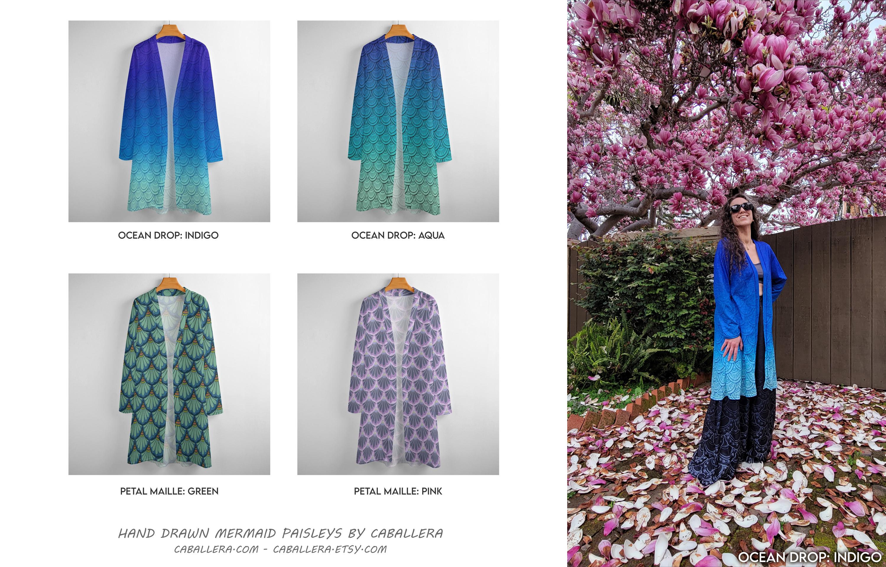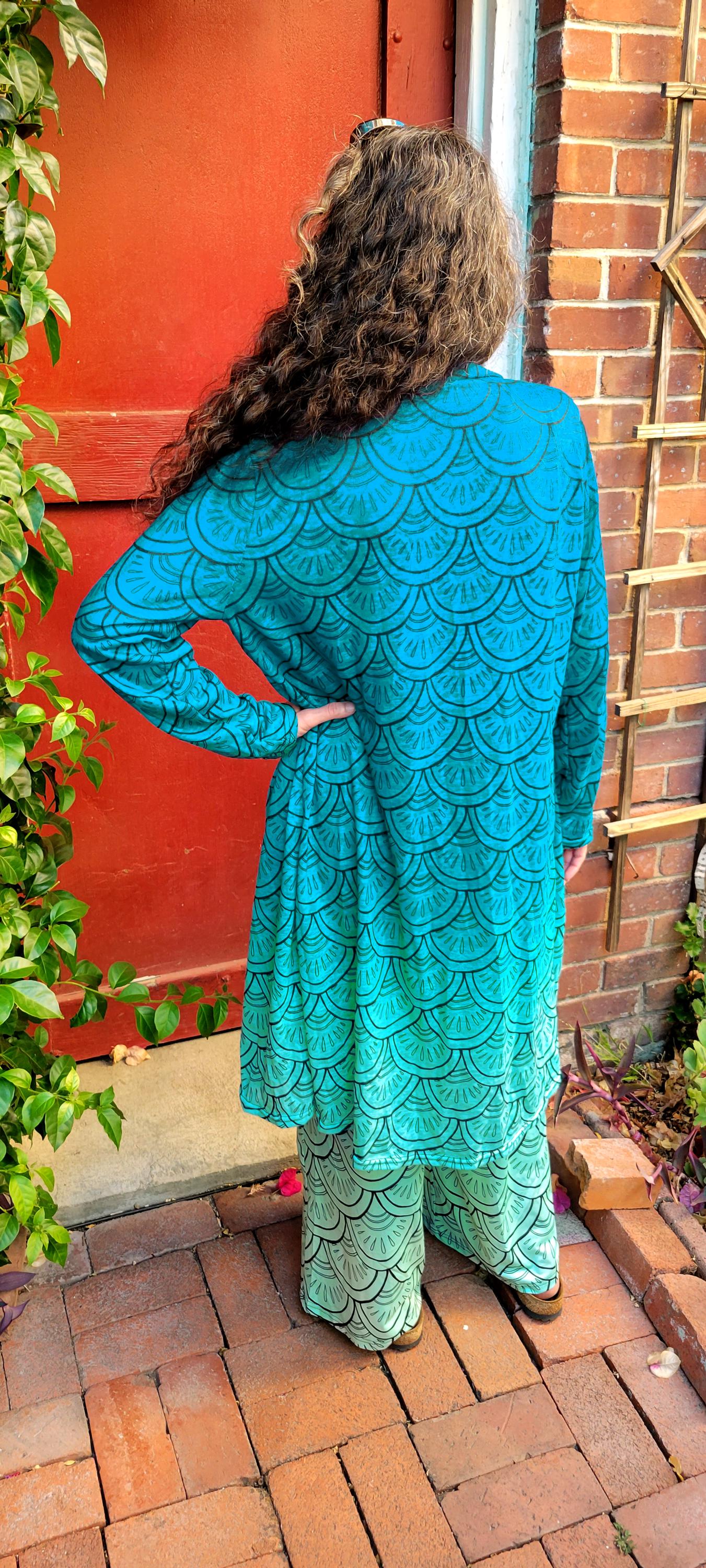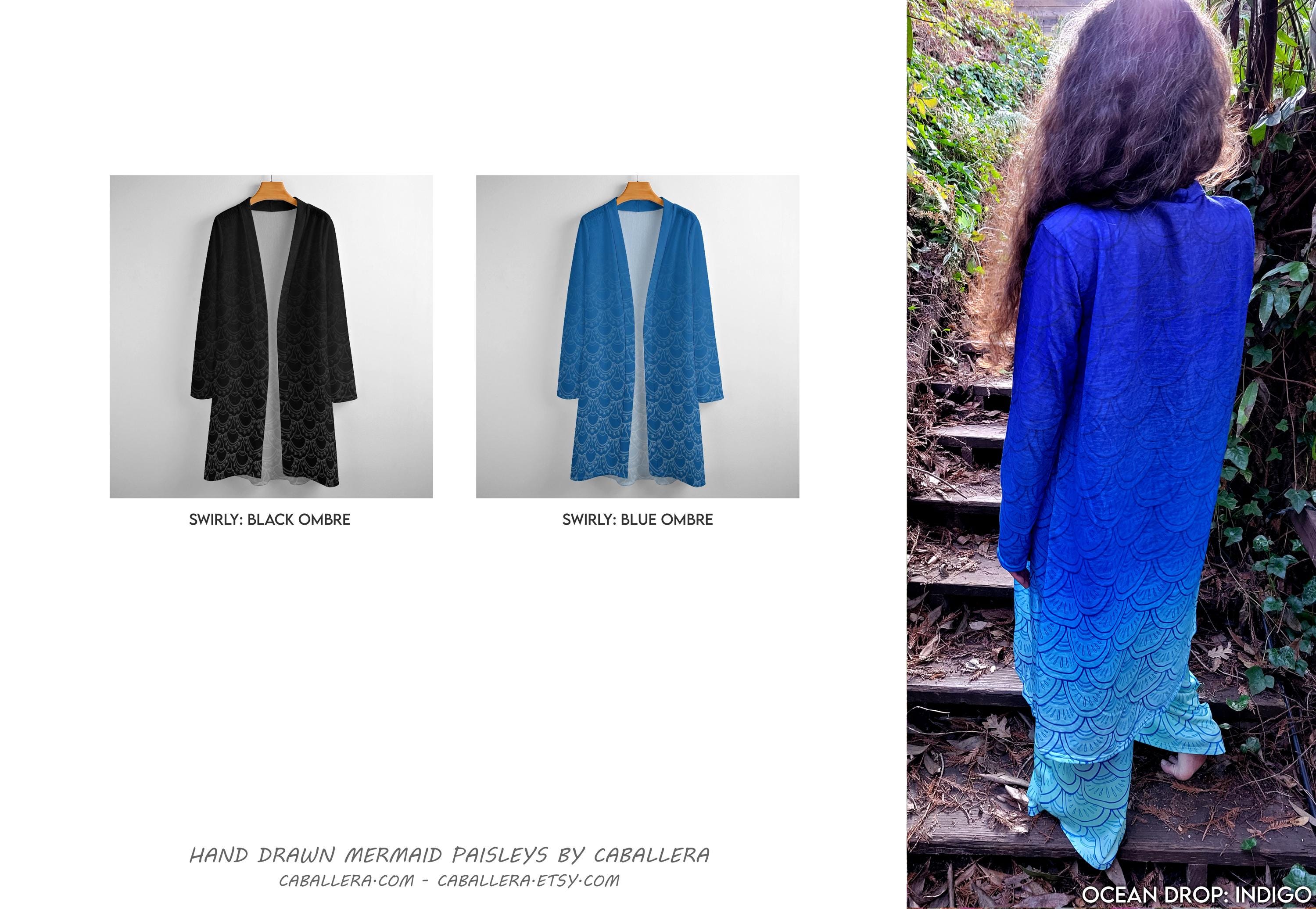 Ocean Drop Mermaid Paisley Cardigan, Aqua Ombre,
