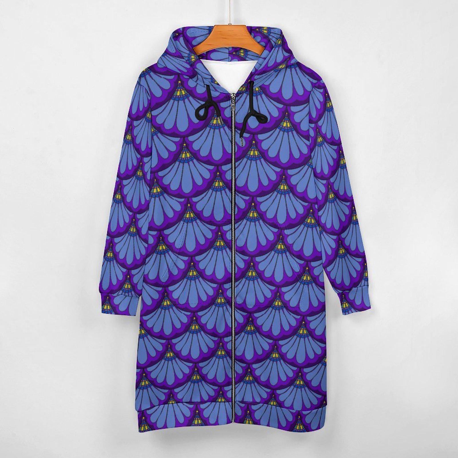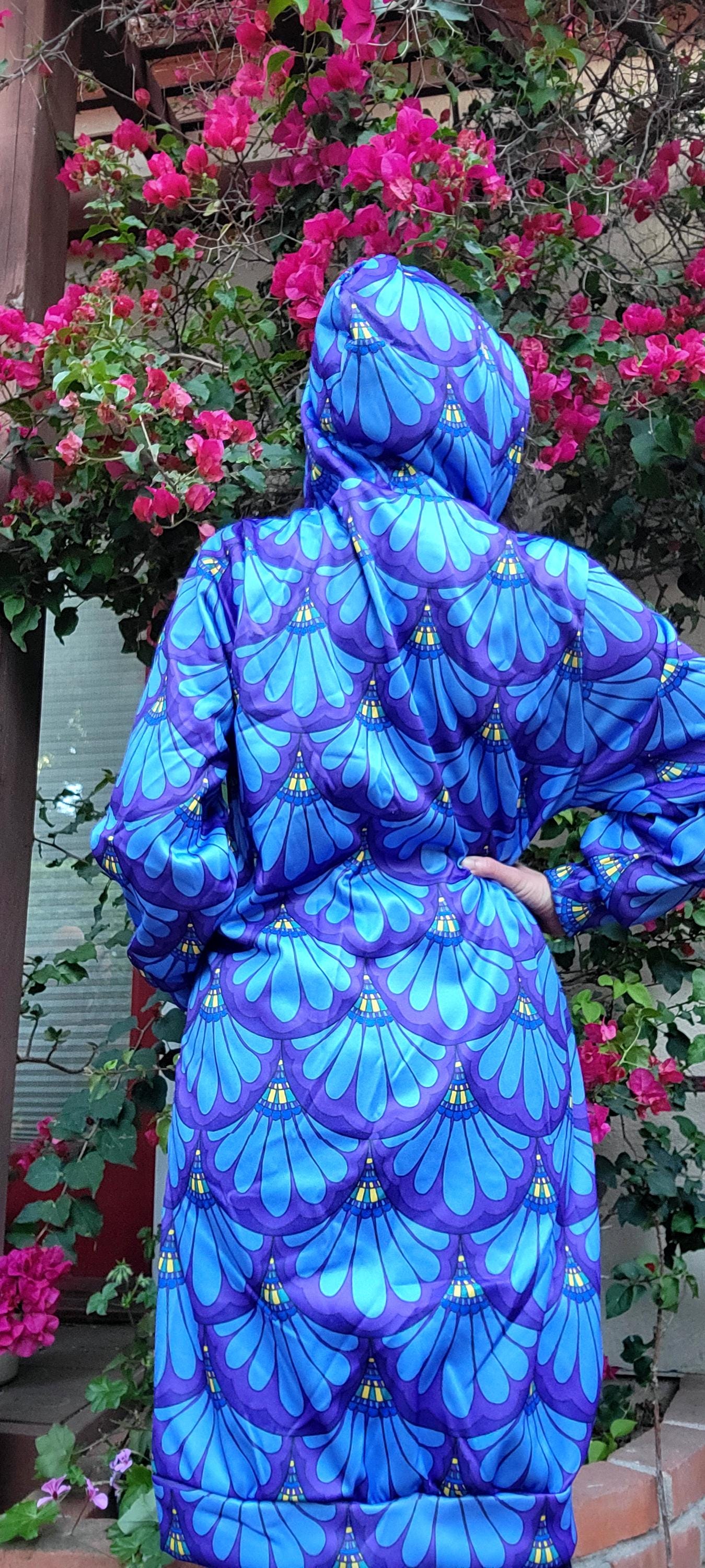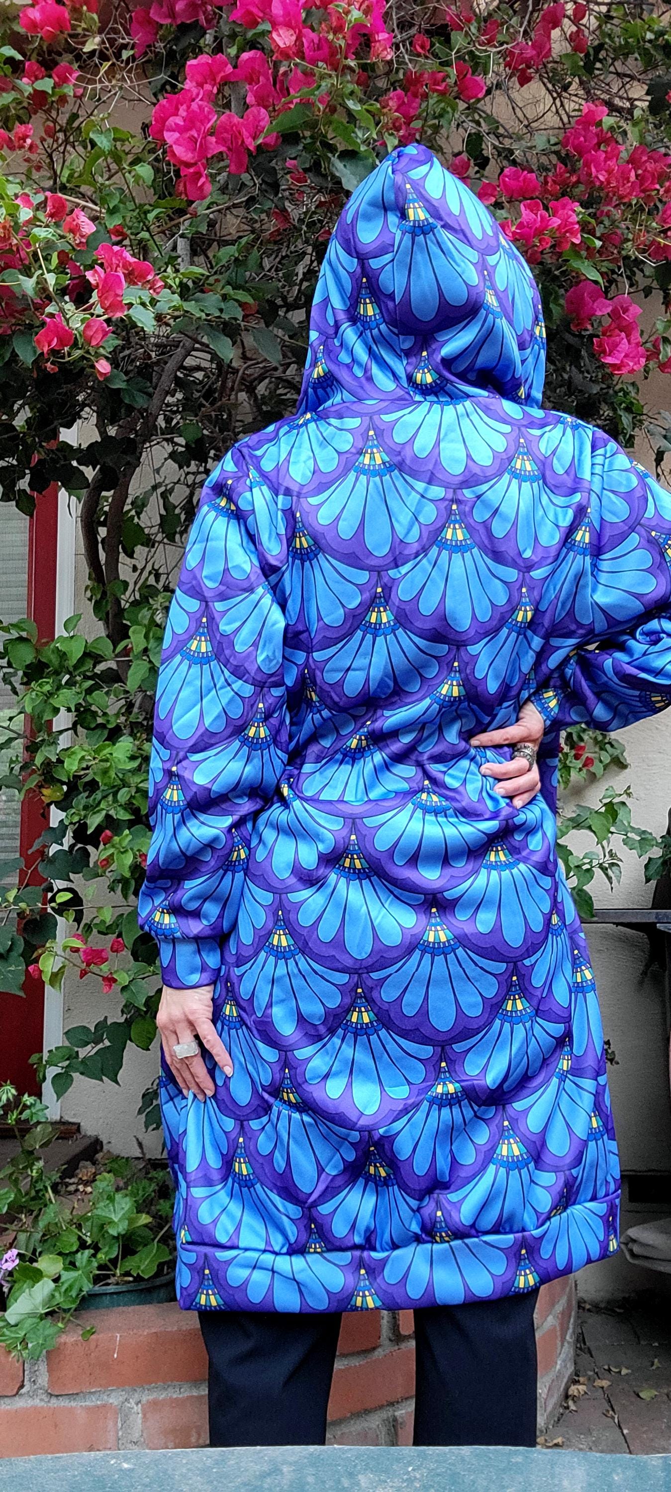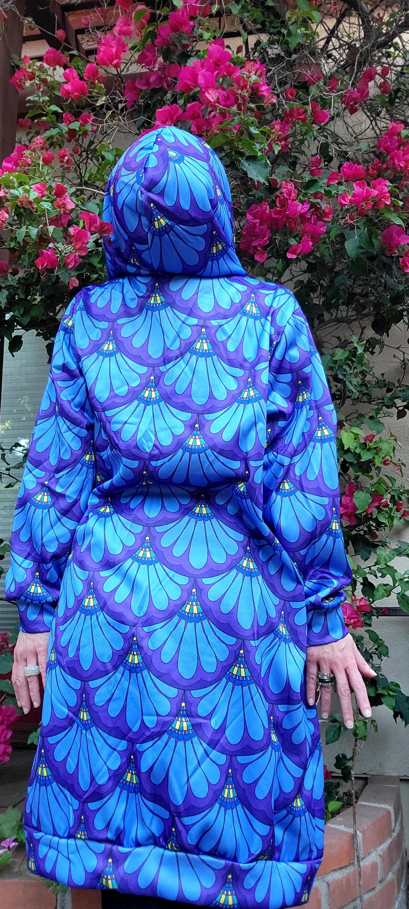 Hoodie Dress, Petal Maille, Green & Blue, Hand Drawn Mermaid Paisley,