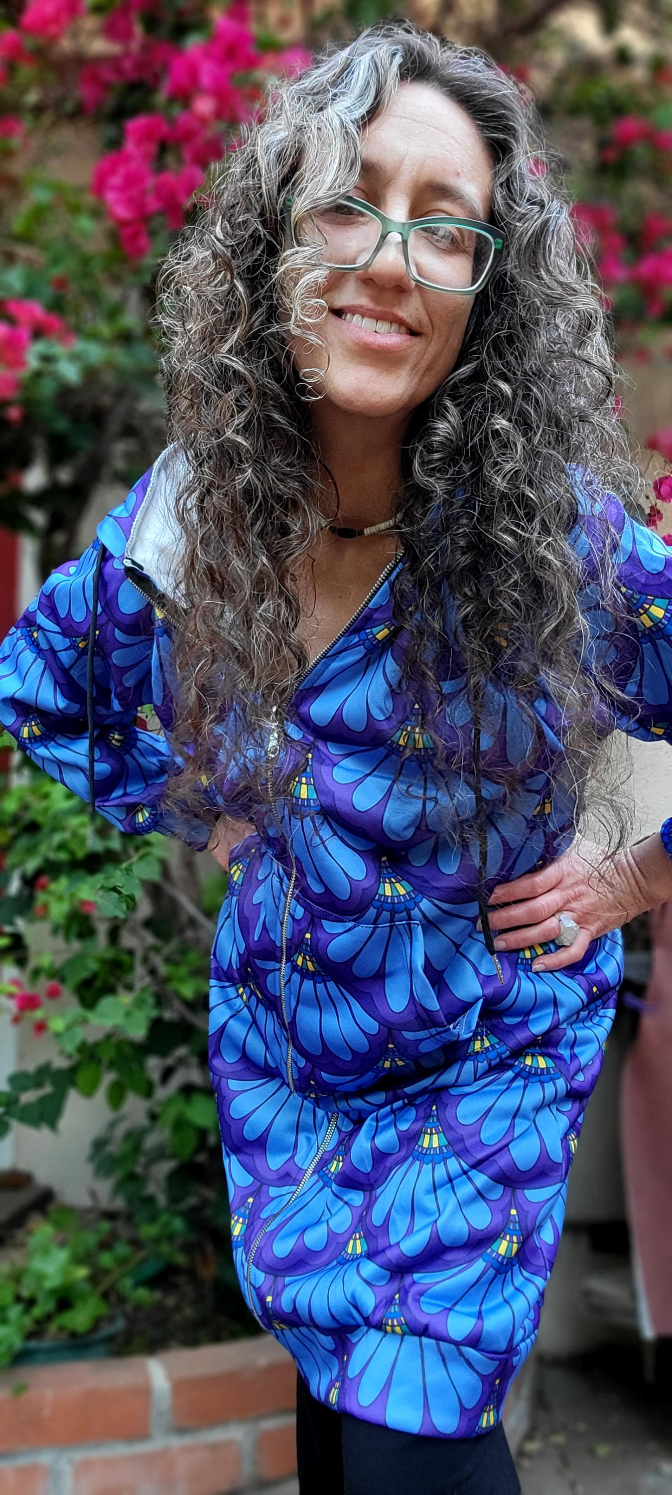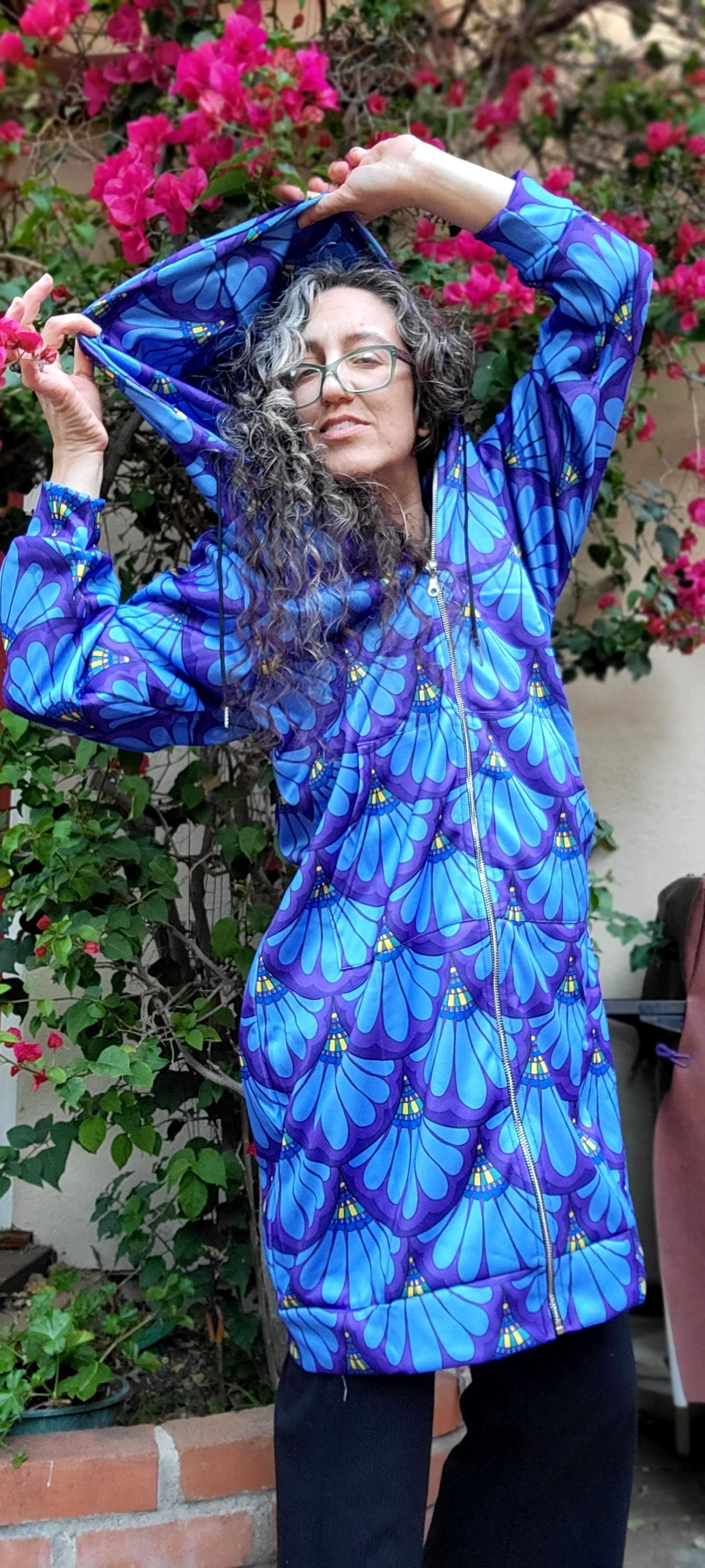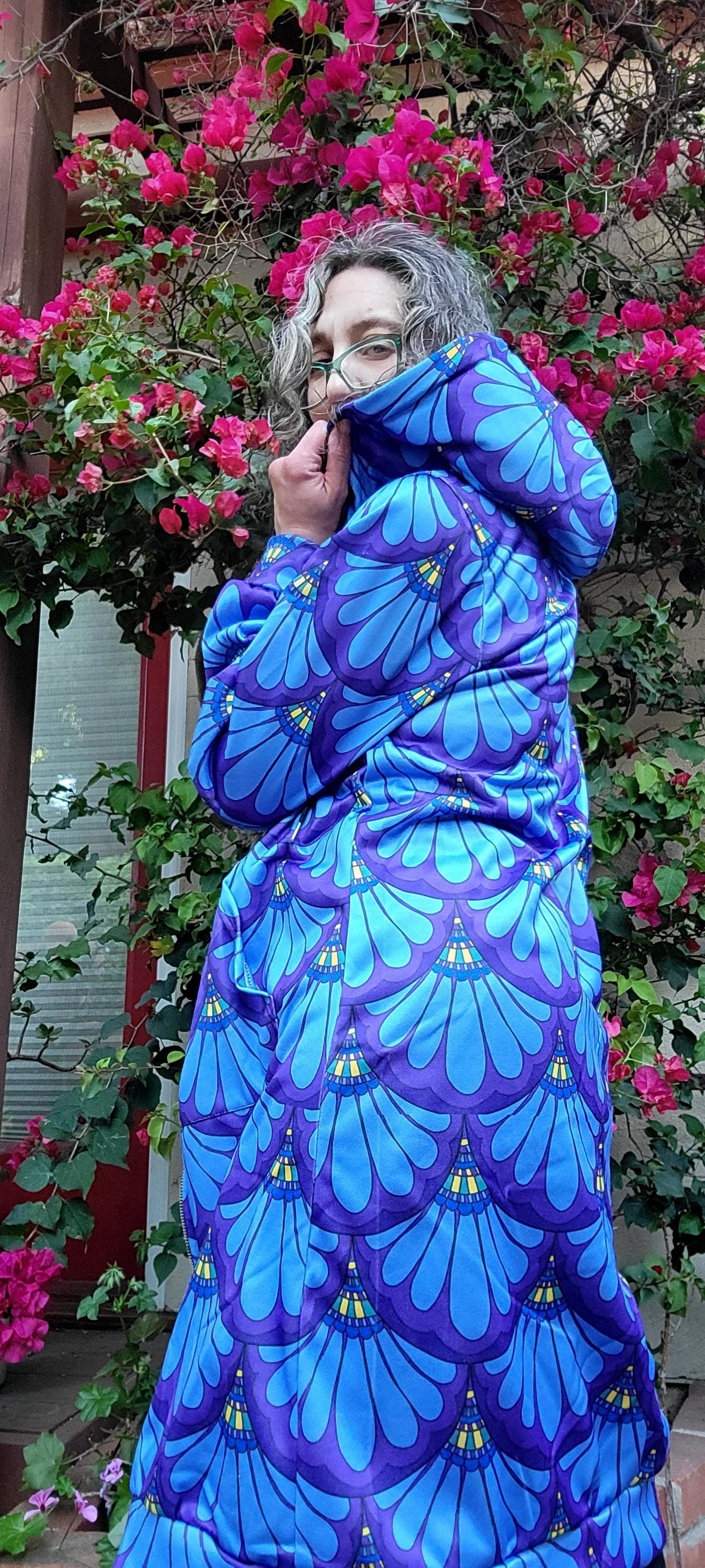 Hoodie Dress, Petal Maille, Green & Blue, Hand Drawn Mermaid Paisley,