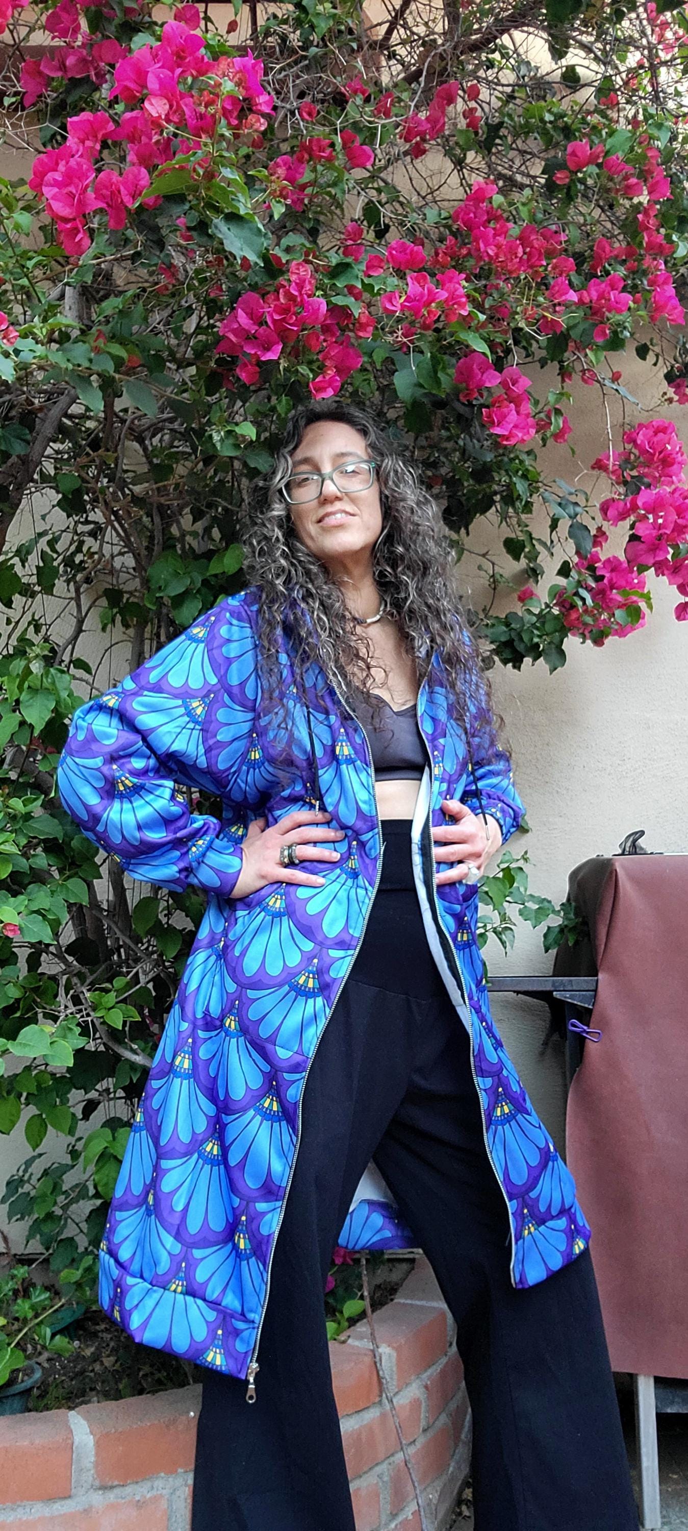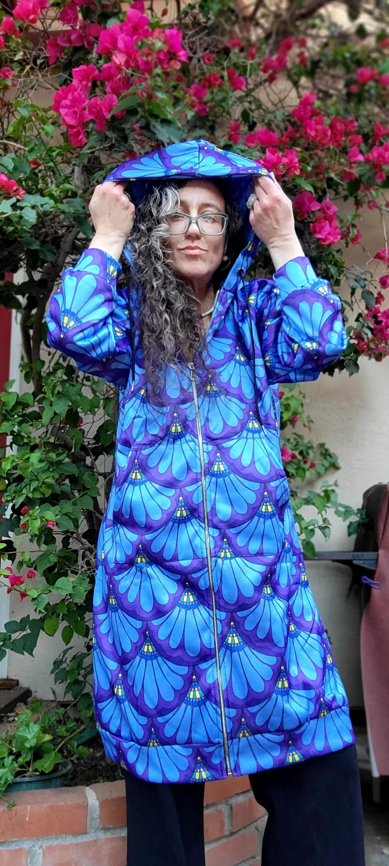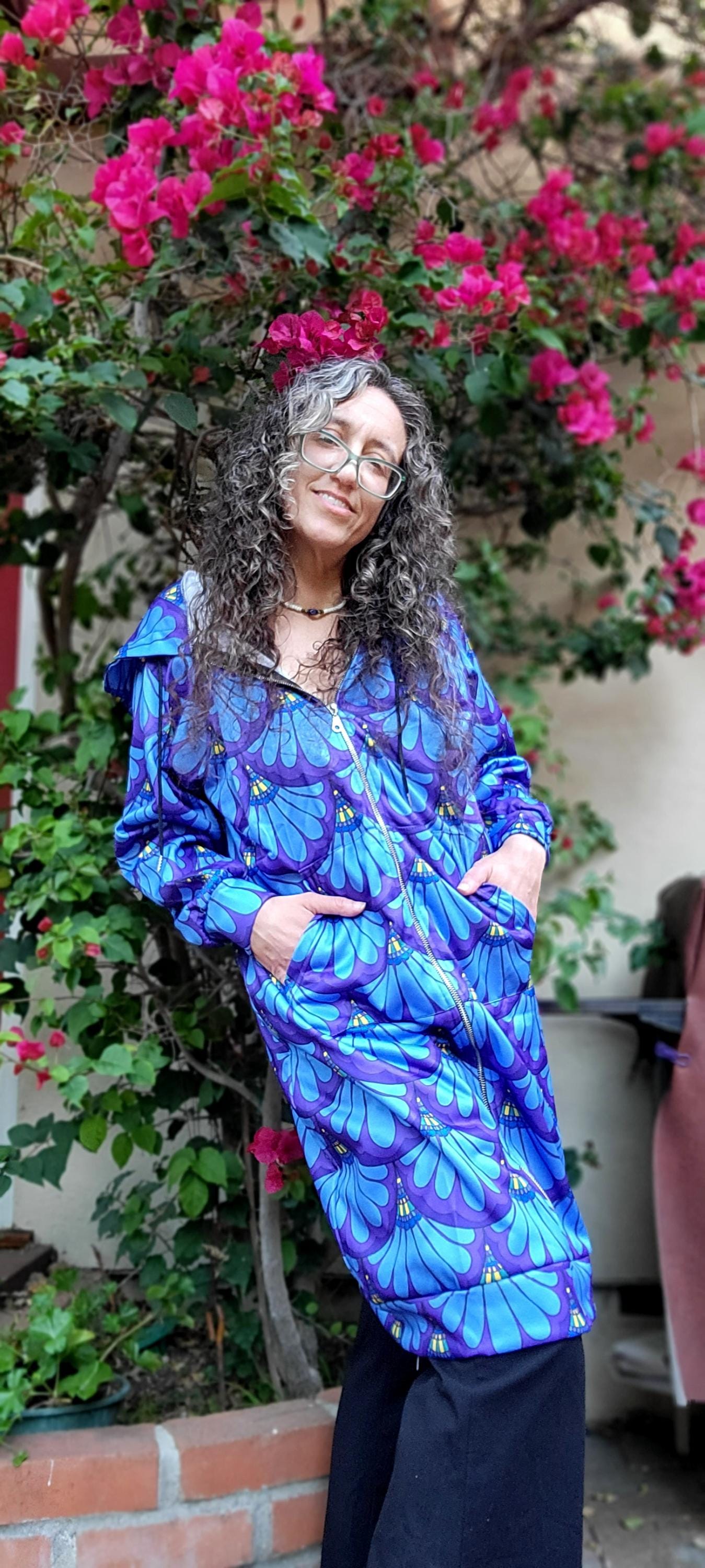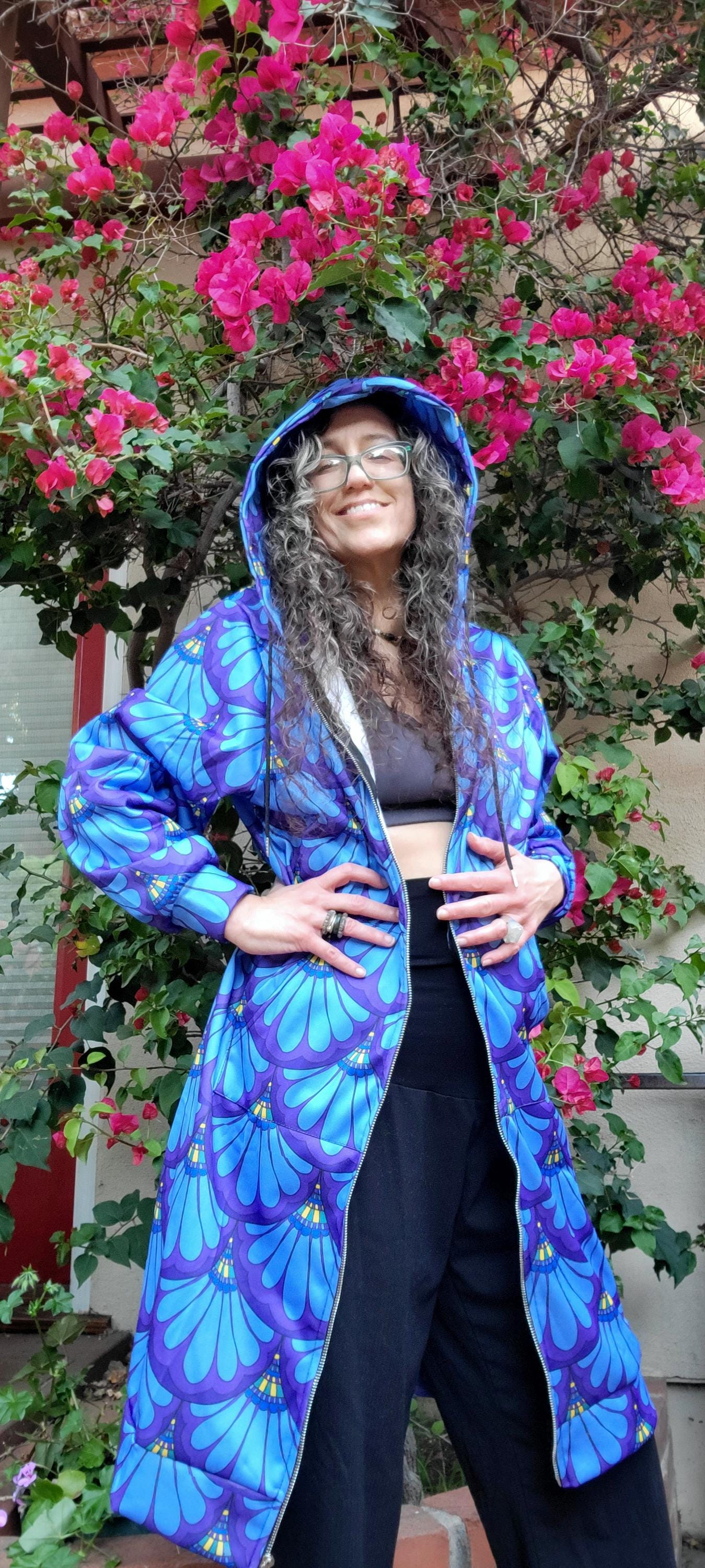Hoodie Dress, Petal Maille, Green & Blue, Hand Drawn Mermaid Paisley,